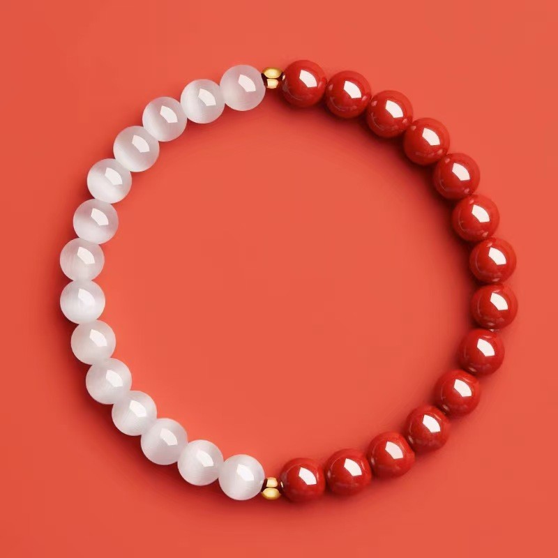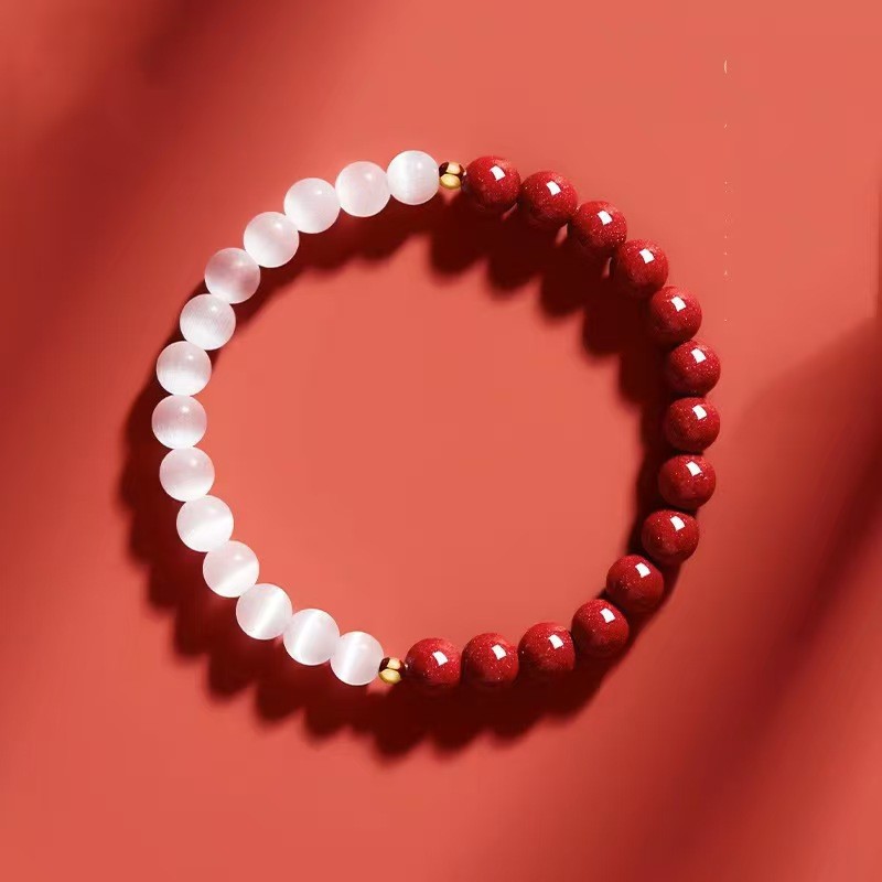 Chinese Natural Raw Cinnabar Cat’s Eye Bracelet High Content Zodiac Year Purple Gold Imperial Factory Direct Sale for Luck, Safety, Wealth, and Interpersonal Relationships